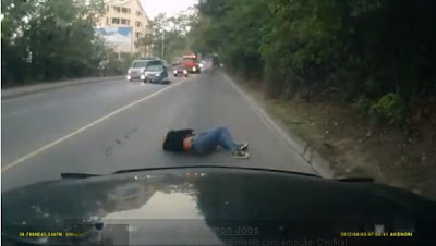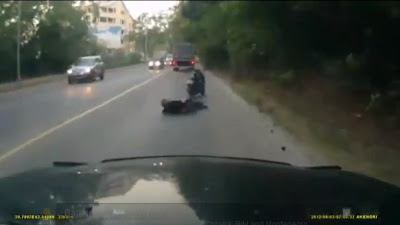 Um vídeo publicado na internet, mostra o momento em que uma mulher parece dormir ao pilotar uma moto e sofre acidente que por sorte não teve consequências graves.