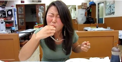 No vídeo a jovem coreana mastiga o polvo ainda vivo. O polvo vivo é um prato típico coreano, Sannakji, servido numa tigela com água. Você teria coragem?