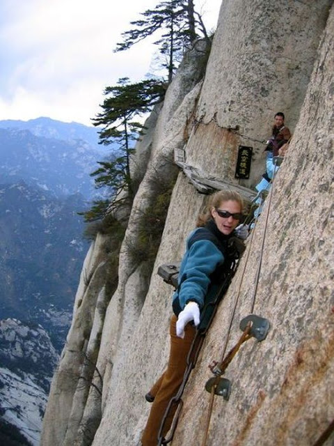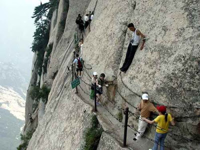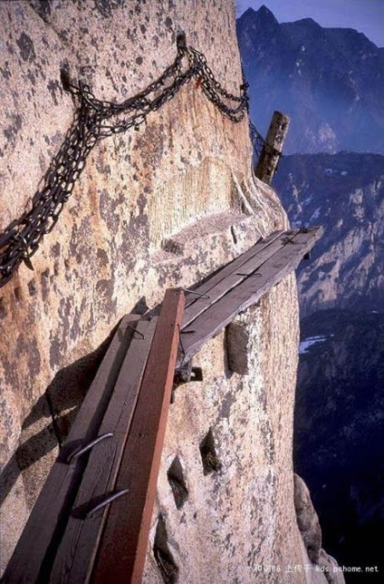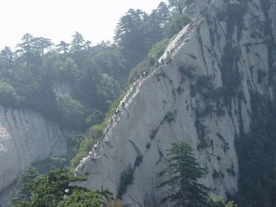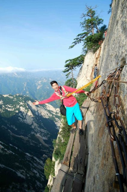 Situado a apenas 120 quilômetros a leste de Xia, uma cidade, na província de Shaanxi, Huashan é uma das cinco montanhas sagradas e um dos destinos mais populares, apreciado bela paisagem natural e pelos templos taoístas antigos, mas Huashan é também a mais famosa trilha de caminhada perigosa até o cume.