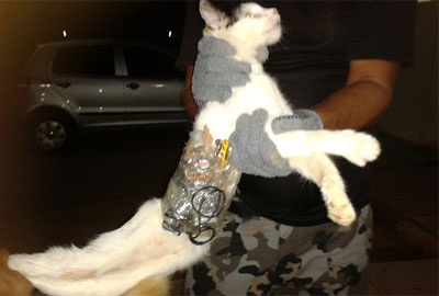 De acordo com o diretor administrativo da unidade, Anderson Soares, todo o material estava preso ao animal através de fitas adesivas. A captura aconteceu na noite do último dia 30.