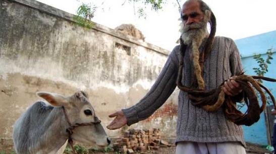 | Indiano não toma banho há 38 anos. Alguns o consideram o “homem mais fedido do mundo”. (Foto: Reprodução/Oddity Central) |